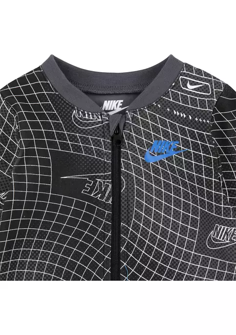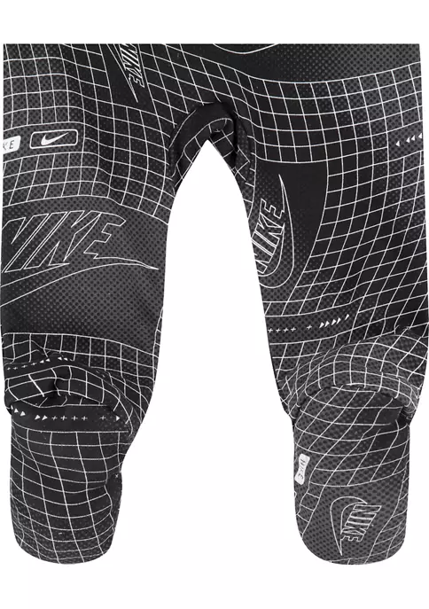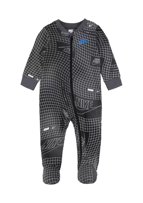 A soft cotton footie with Nike®’s logo and a bold, graphic print are a perfect fit for your sporty little boy.