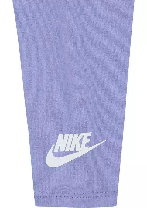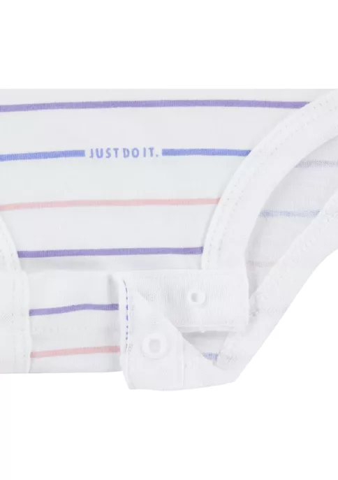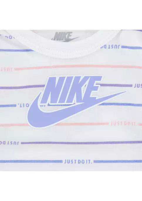 This cute bodysuit and leggings set features the Nike® logo and a set of pretty pastel stripes.