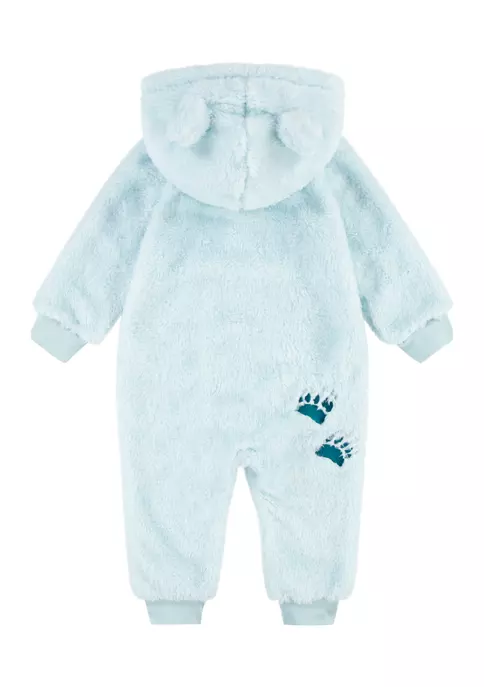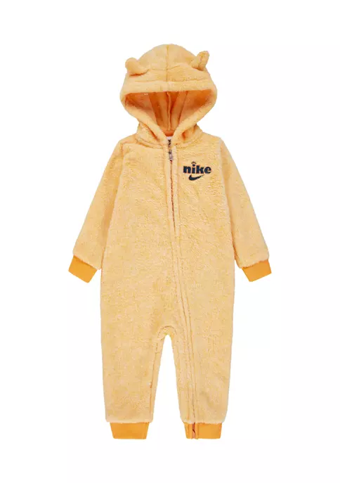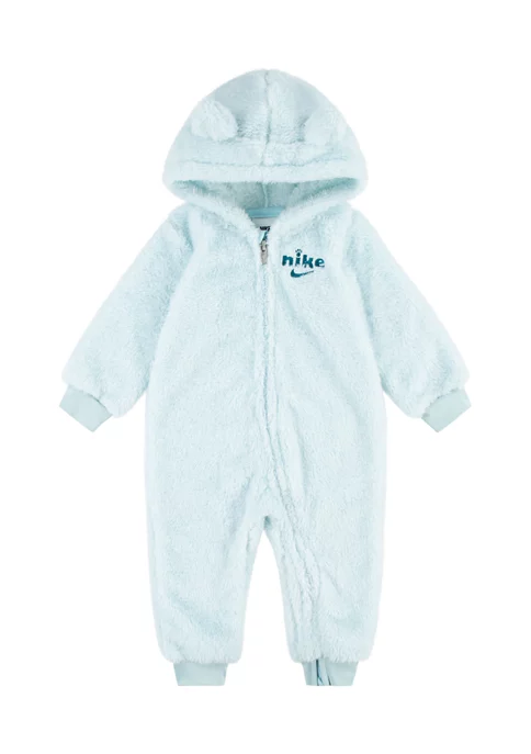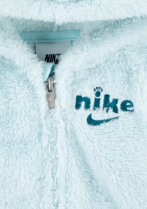 Bundle up baby in these adorable fluffy sherpa coveralls, complete with two paw prints and the Nike® logo on the front left side.
