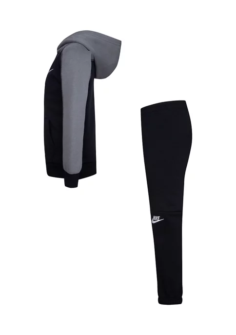 Keep your little athlete-in-training comfy while he plays with this sporty set from Nike® featuring a cozy hoodie and pants.
