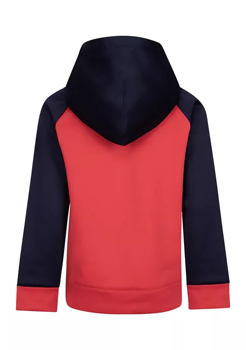 Sporting the signature Nike® swoosh and slogan, this comfy hoodie is a cozy pick for chilly weather.