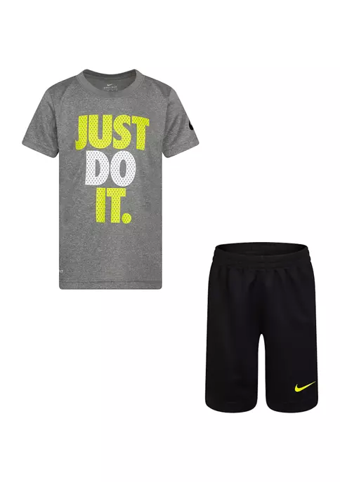Your little one will sport the best casual look when wearing this Nike® t-shirt and shorts set.