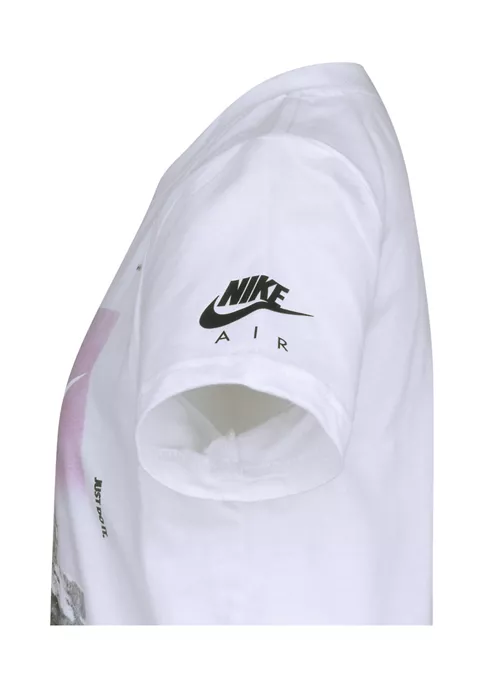 This logo emblazoned Nike® t-shirt also features a mountain peak.