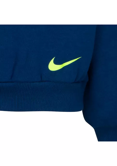 The oversized Nike® branding decorates a comfy hoodie made to keep him warm on the chilly days.