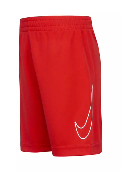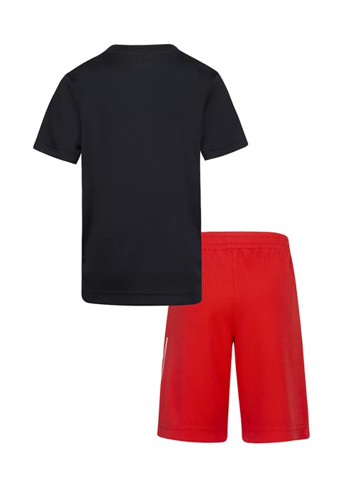 Defined by a unique Nike® swoosh graphic, this boys’ set pairs a short-sleeved t-shirt with elastic shorts.