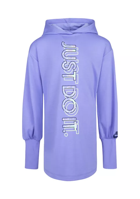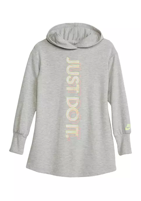 Sporty meets girly in this hooded dress from Nike®, featuring their signature slogan down the front.