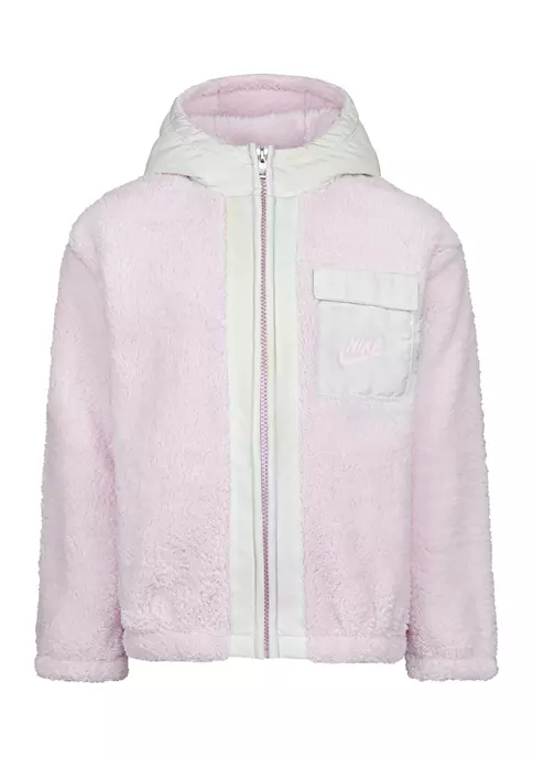 Covered in super-soft and warm Sherpa fabric, this jacket is embellished with a sporty and iconic Nike® branded patch.