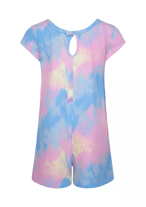 Decked out in colorful tie-dye, this short-sleeved romper is embellished with a small Nike® chest logo.