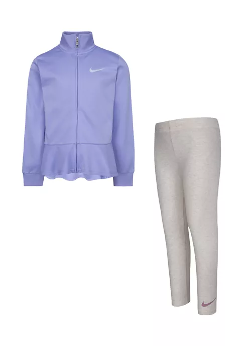 Keep her comfy while she plays with this sporty set from Nike® featuring a zip-up jacket and leggings.