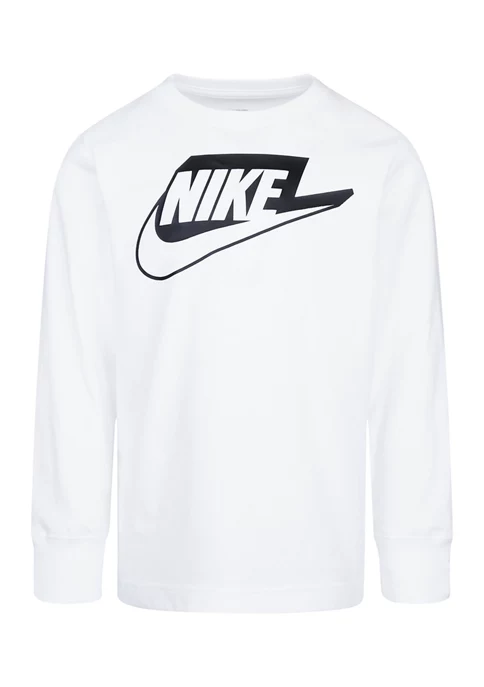 This white long sleeve t-shirt features Nike® emblazoned on the front as well as their signature swoosh.