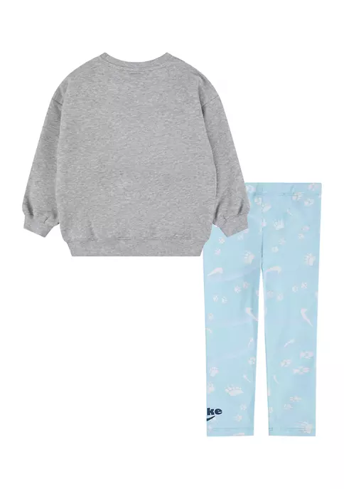 Sporting the iconic Nike® logo and adorable paw prints, this set from Nike® features a comfy sweatshirt and leggings.