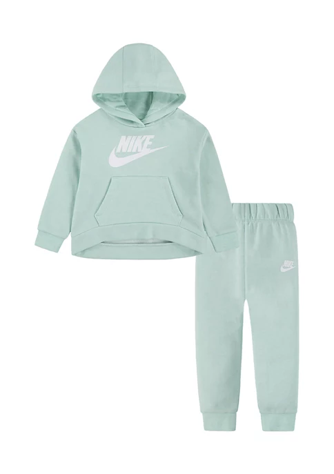This girls Nike® fleece hoodie set pairs comfy joggers with a cute hoodie and comes in a variety of different colors.